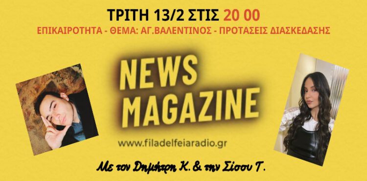 Share this… Facebook Pinterest Linkedin Viber Whatsapp Gmail Email Print “News Magazine” #4 Επικαιρότητα – Θέμα: Τι θέλουν οι Γυναίκες – Προτάσεις Διασκέδασης … και όχι μόνο… Τέταρτη εκπομπή για τον Δημήτρη και την Σίσσυ μέσα απο το Ραδιόφωνο της Νέας Φιλαδέλφειας filadelfeiaradio.gr όπου σήμερα είχαν θέμα “Τι θέλουν οι γυναίκες” ΠΑΡΑΚΟΛΟΥΘΗΣΤΕ[…]